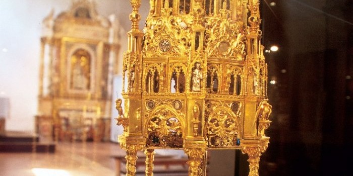 Dall’oro dipinto di Crivelli, l’itinerario prosegue verso l’oro scolpito e incastonato di reliquiari e suppellettili religiose con particolare riferimento a due esemplari conservati nei Musei di arte sacra.