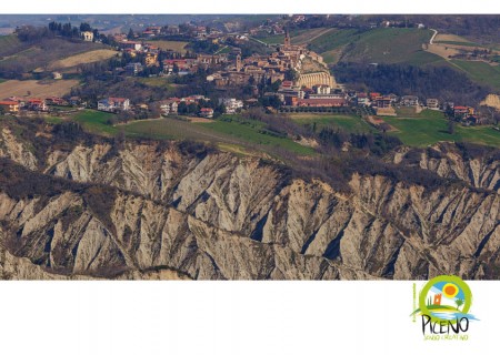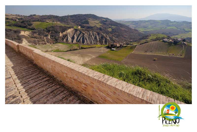 Il Piceno si apre così agli occhi, e rimane nel cuore, con le linee dolci e i morbidi colori tono su tono della sua campagna patchwork, un familiare e accogliente disegno a perdita d’occhio, il frutto dell’incontro e della cura reciproca, tra la gente e il suo mondo.