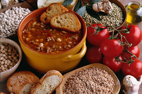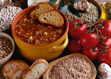 100 gr. di lenticchie; 100 gr. di ceci; 100 gr, di cicerchia; 100 gr. di grano; 100 gr. di orzo perlato; 100 gr. di fava; 100 gr. di fagioli bianchi; 100 gr. di fagioli borlotti; 100 gr. di farina; 100 gr. di granoturco; olio extravergine di oliva; polpa di pomodoro; 1 cipolla; qualche spicchio d’aglio; peperoncino; sale.
