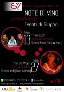 Da Sabato 13 Giugno, con la serata Brasil e il samba e il bossanova dei “Trem Azul”, torna l’appuntamento con Note di Vino 2015, l’apericena abbinato a un cartellone musicale di grande qualità. Ogni sabato, da Giugno a Settembre, ci sarà un concerto abbinato ad un aperitivo a tema.