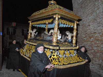 Tra tutte le tradizioni religiose, quella più sentita dai ripani e la più suggestiva è la Processione del Cristo Morto con la statua della Madonna Addolorata. La Solenne Processione, che affonda le sue radici nel lontano 1624, anche quest’anno percorrerà le principali vie del borgo nella sera del Venerdì Santo.