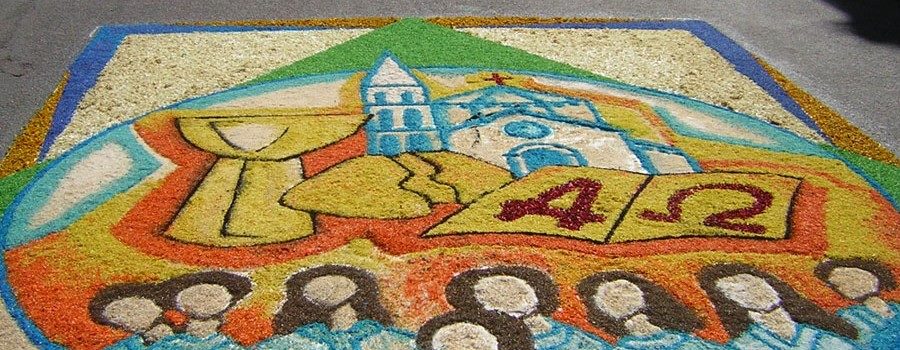 In questo contesto, sul finire degli anni ’30 del ’900, il Corpus Domini veniva accompagnato e deliziato da una ricca festa di fiori, detta “Infiorata”. L’uffizio della processione, ossia dell’ostentazione del Corpo e del Sangue di Cristo si professa per le vie del paese con i profumi ed i colori dei fiori recisi.