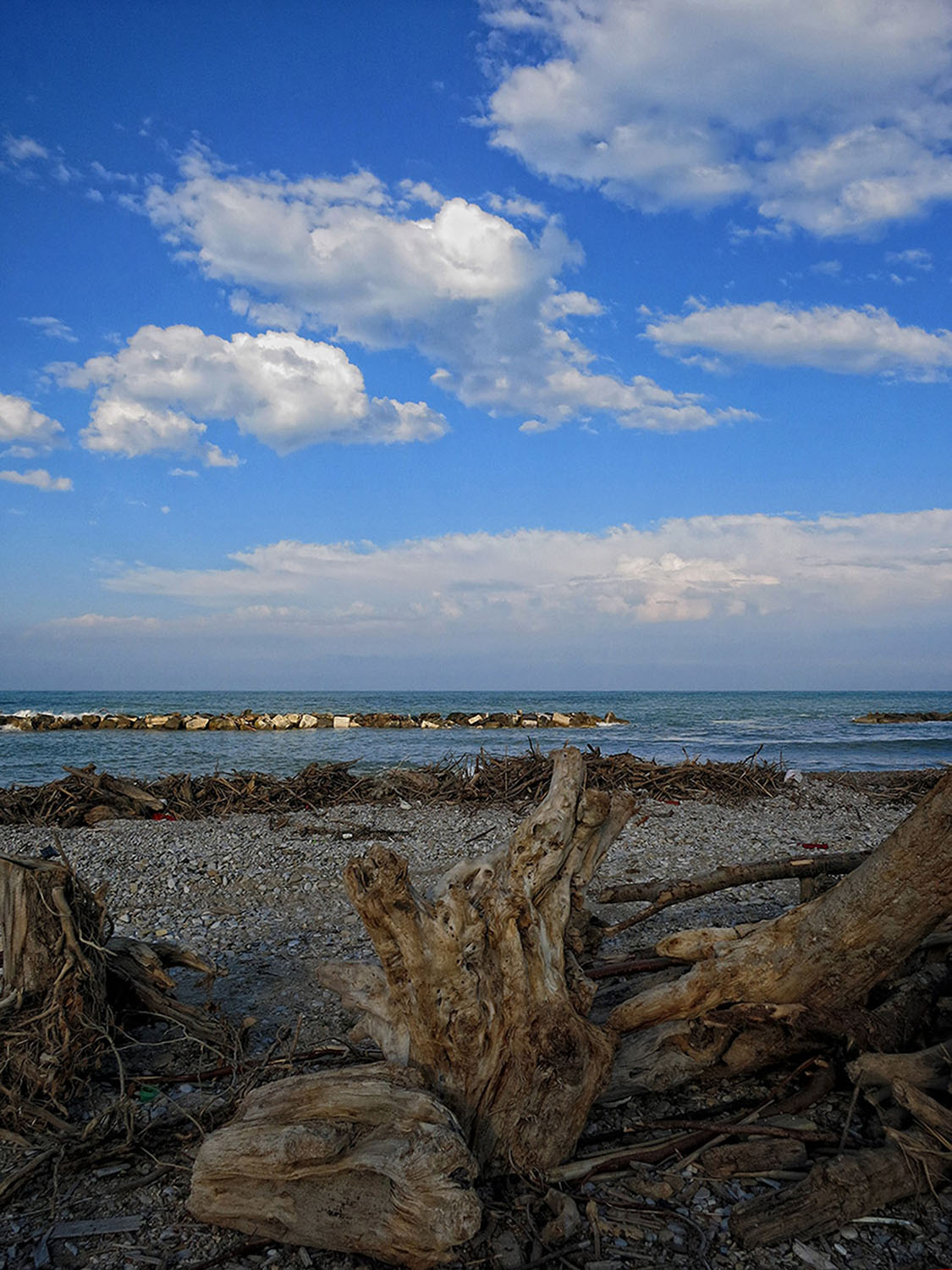 Foto scattata sulla battigia del lungomare piceno prima che fosse ripulito dalle mareggiate invernali.