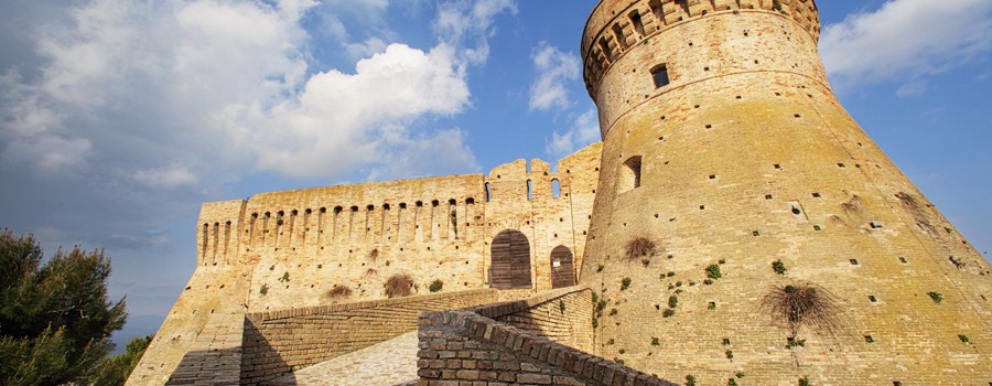 Il centro storico è dominato dalla maestosa e inconfondibile rocca medievale, capolavoro di architettura militare, costruita dalla famiglia Acquaviva d’Atri intorno al 1300. La rocca, che in origine presentava un mastio e una cinta muraria con merlature ghibelline, è stata ricostruita nel 1474 a seguito di un assedio su progetto dell’architetto Baccio Pontelli. Ha una pianta quadrangolare irregolare con un torrione in ogni vertice e racchiude all’interno un’ampia corte centrale servita da un pozzo.