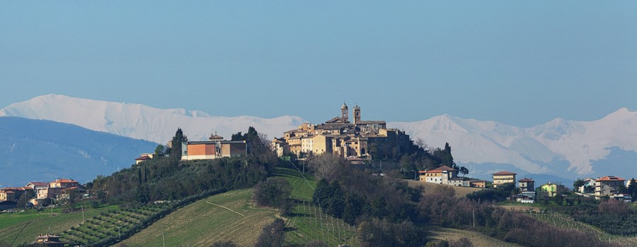 Il piccolo borgo di Cossignano sorge a 400 metri sul livello del mare, tra il torrente Menocchia e il fiume Tesino.