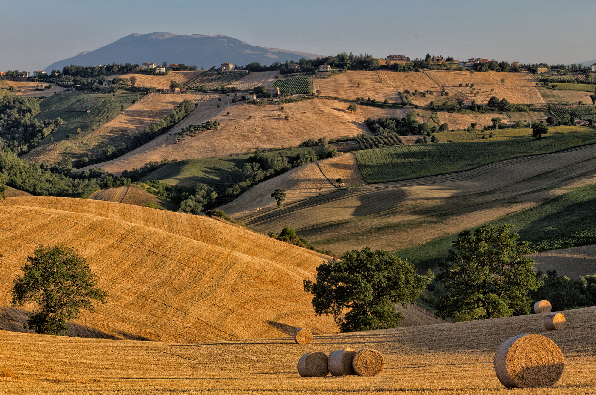 estate nella campagna marchigiana; sullo sfondo la montagna dei fiori